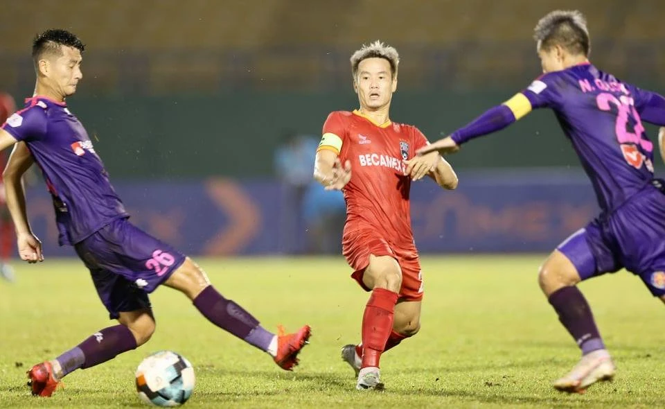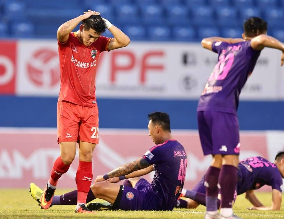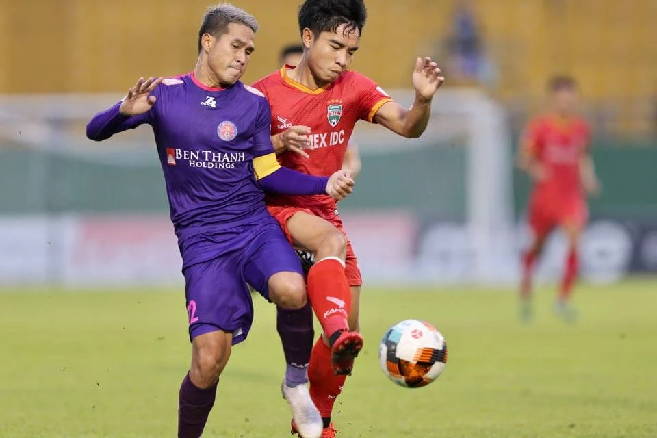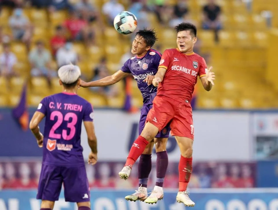 Hàng thủ Sài Gòn thường mệt mỏi với các pha phản công cực nhanh của B. Bình Dương và hay tập trung bóng cho cặp tiền đạo Việt Cường - Tiến Linh.