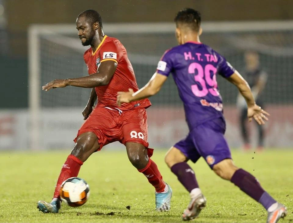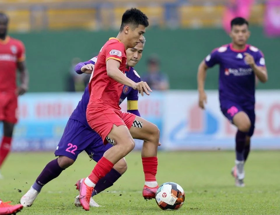 Hậu vệ Tấn Tài có những pha lên bóng dũng mãnh thường qua mặt tiền vệ lẫn hậu vệ biên trái của Sài Gòn và tung ra nhiều đường chuyền sắc lẹm.