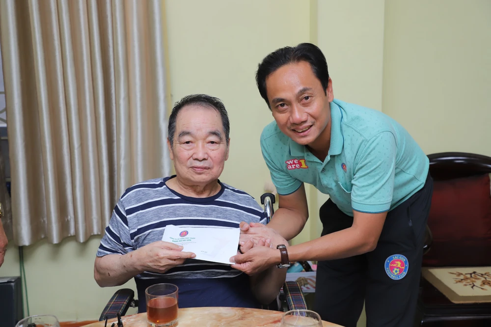 Thay mặt CLB Sài Gòn, HLV Phùng Thanh Phương và Ban huấn luyện trao tặng phần quà trị giá 5 triệu đồng cho cựu HLV Vương Tiến Dũng, góp chút tấm lòng cùng gia đình chăm sóc ông và cầu chúc ông mau chóng vượt qua bệnh tật.