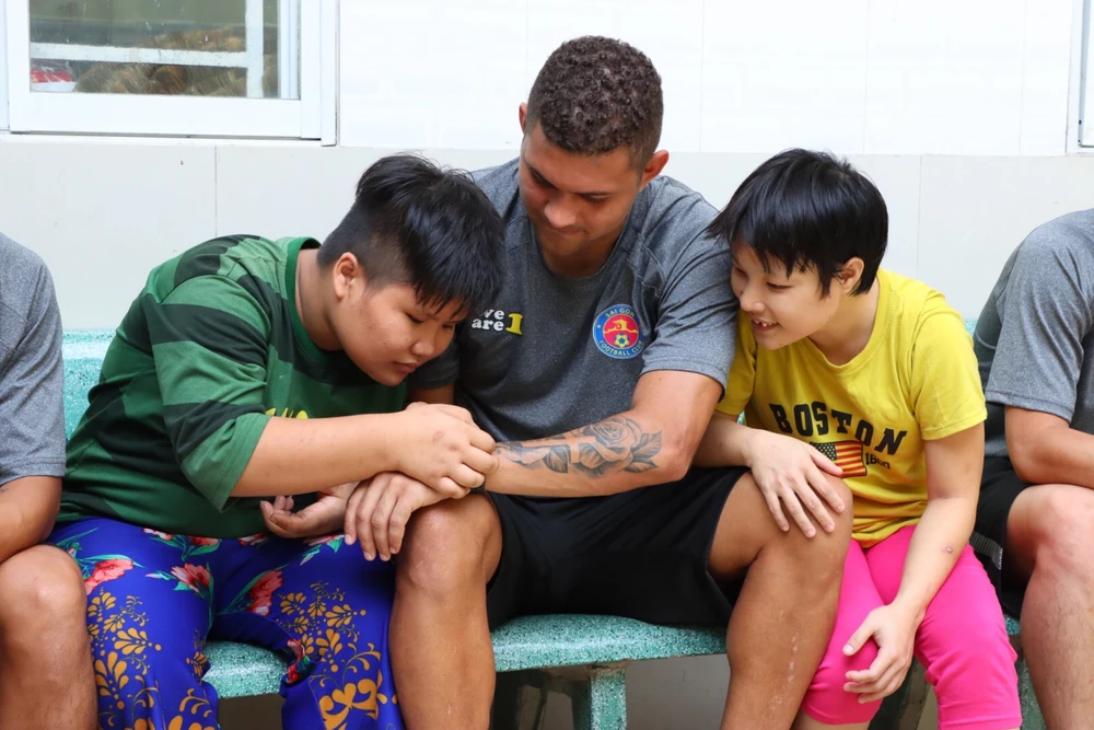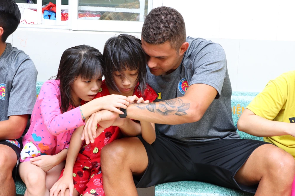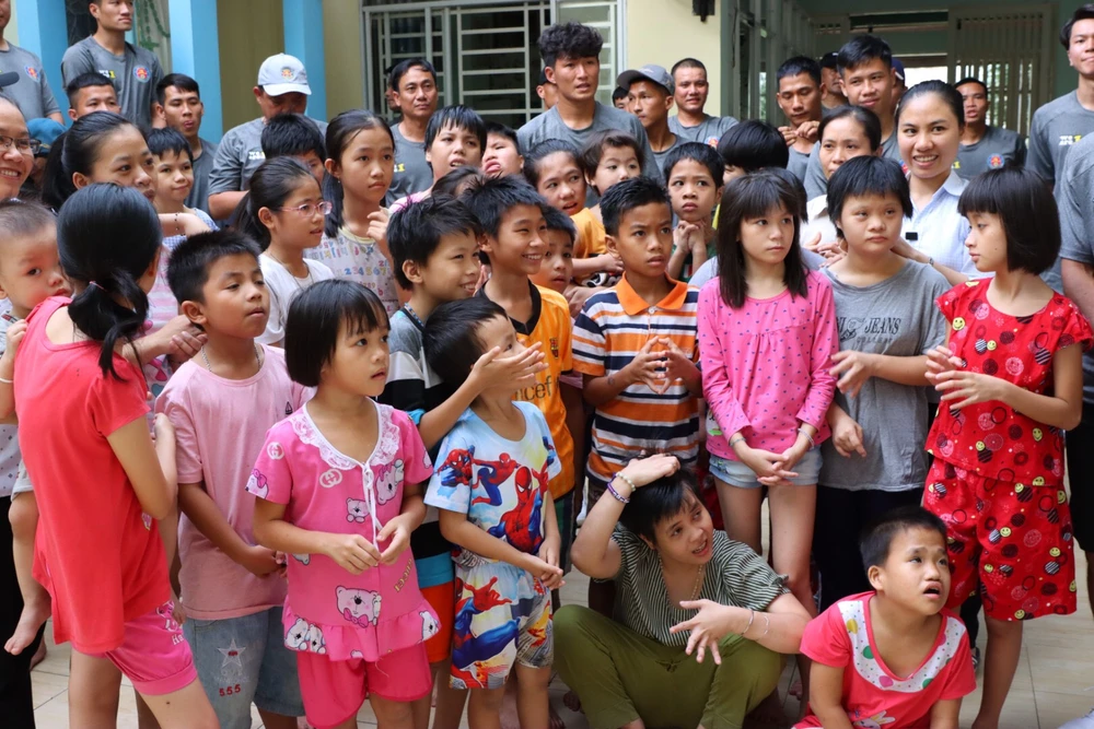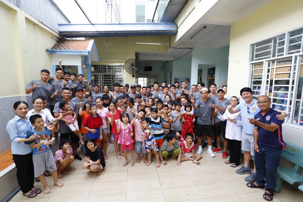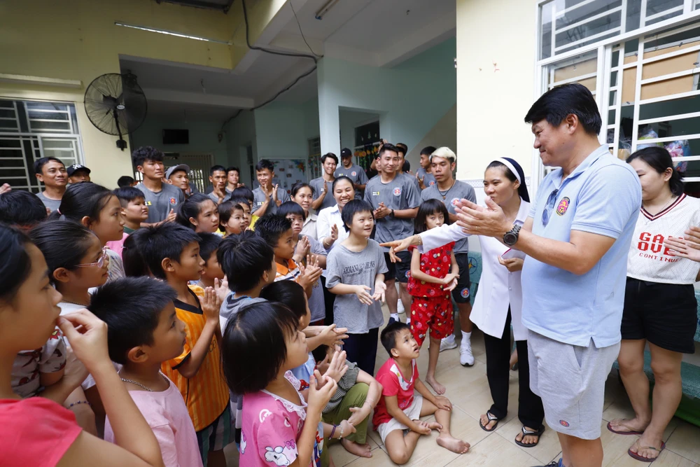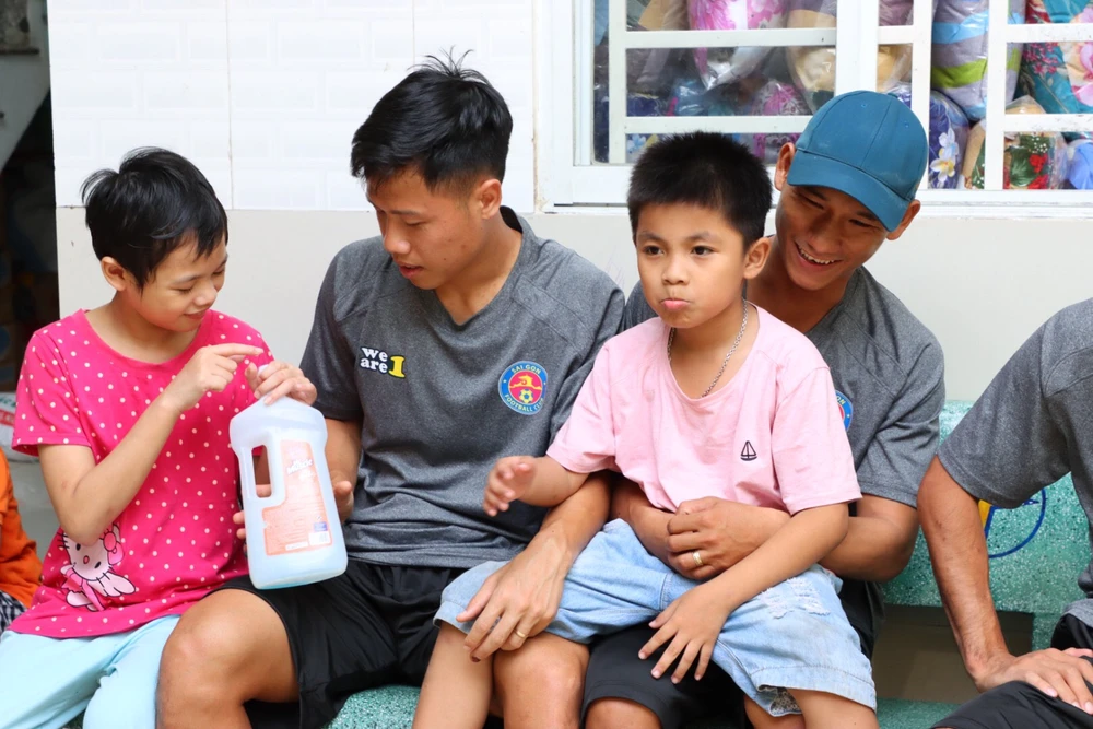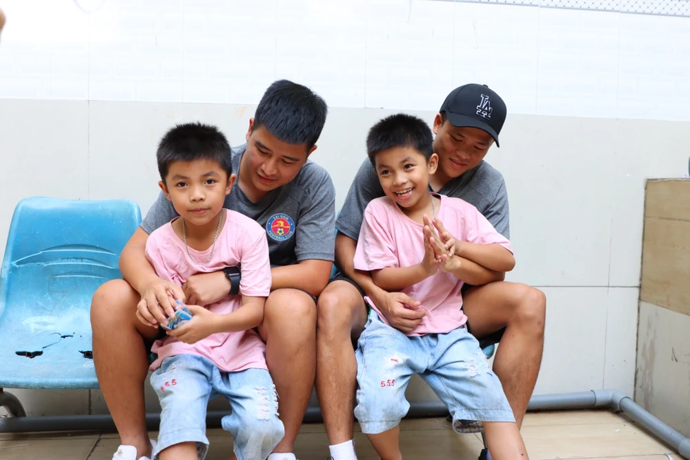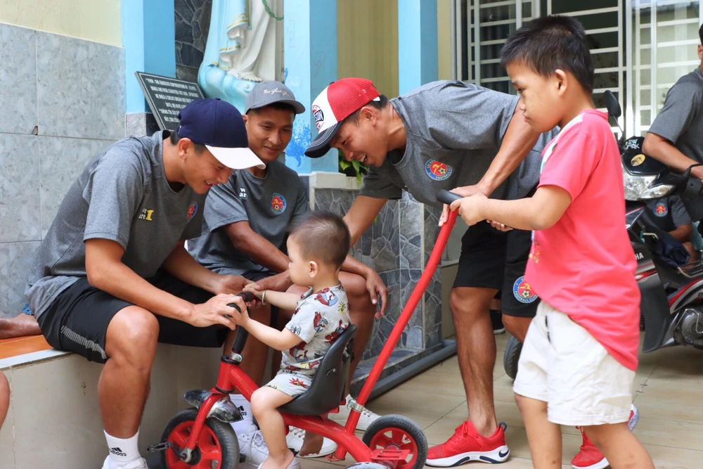 Cầu thủ Sài Gòn FC đã chia sẻ tình cảm của mình với các cháu nhỏ bằng một tấm lòng chân thật.