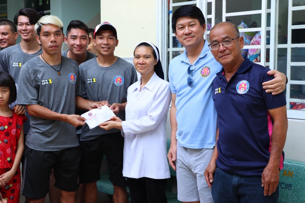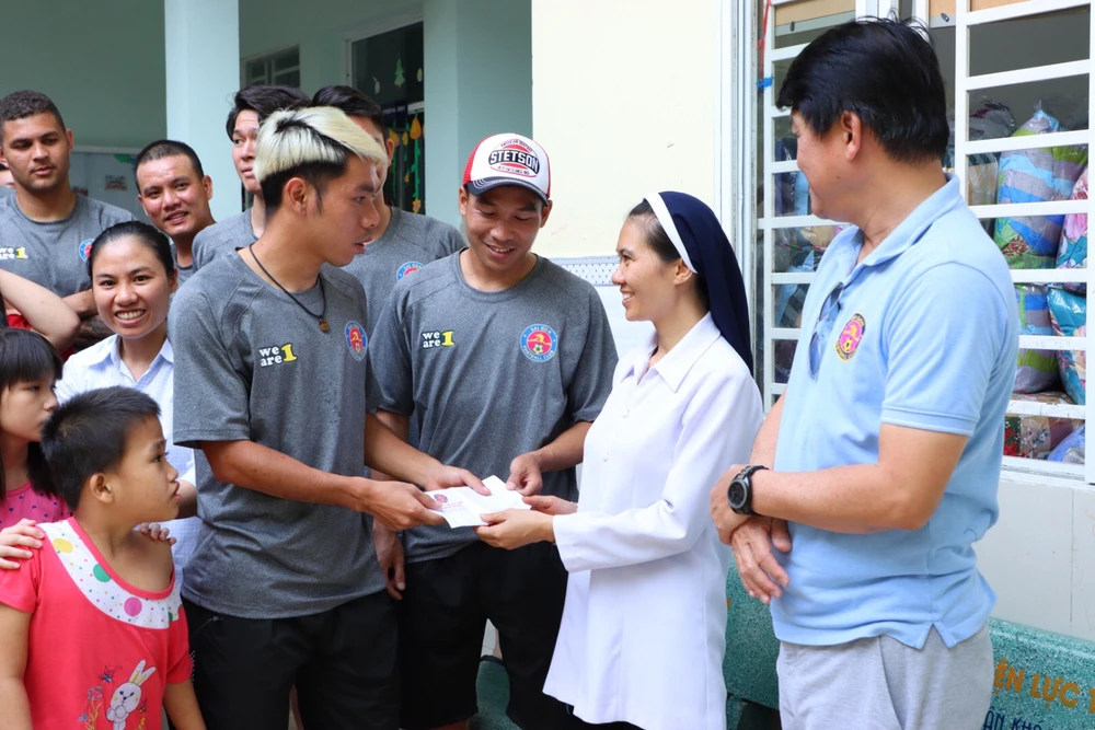 Các cầu thủ Sài Gòn FC vui vẻ khệ nệ trên con đường mòn dẫn vào Mái ấm chia nhau mang vác thêm mùng, mền, chiếu, gối cho các em nhỏ có những bữa ngủ ngon. Họ còn gạo, đường, sữa,... và một số tiền nhỏ 10 triệu đồng giúp các Soeur giải quyết khó khăn tạm thời, trang trải việc học hành cho những mảnh đời bất hạnh.
