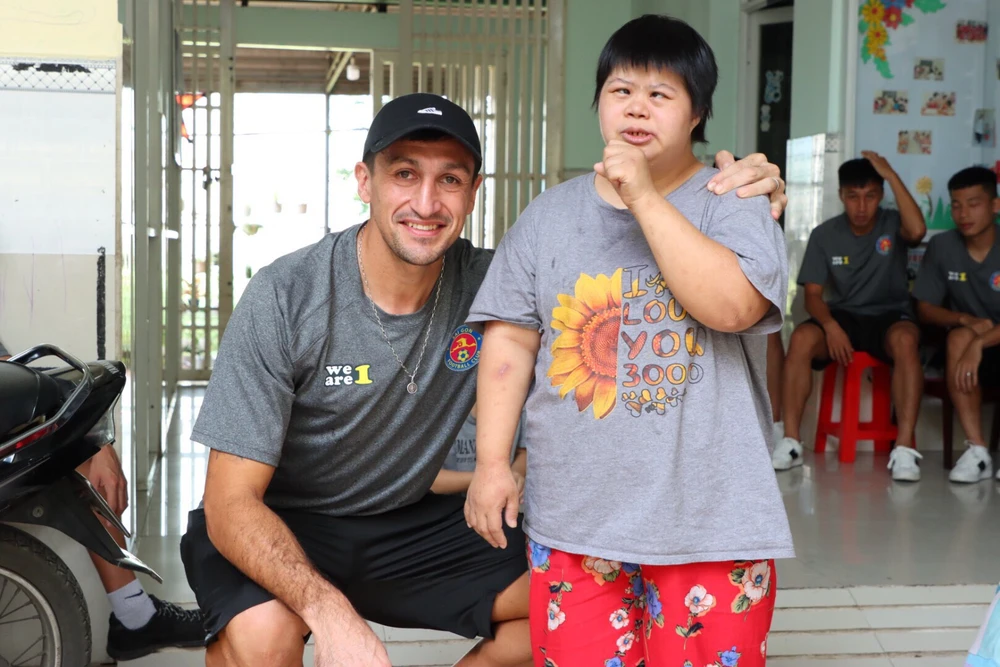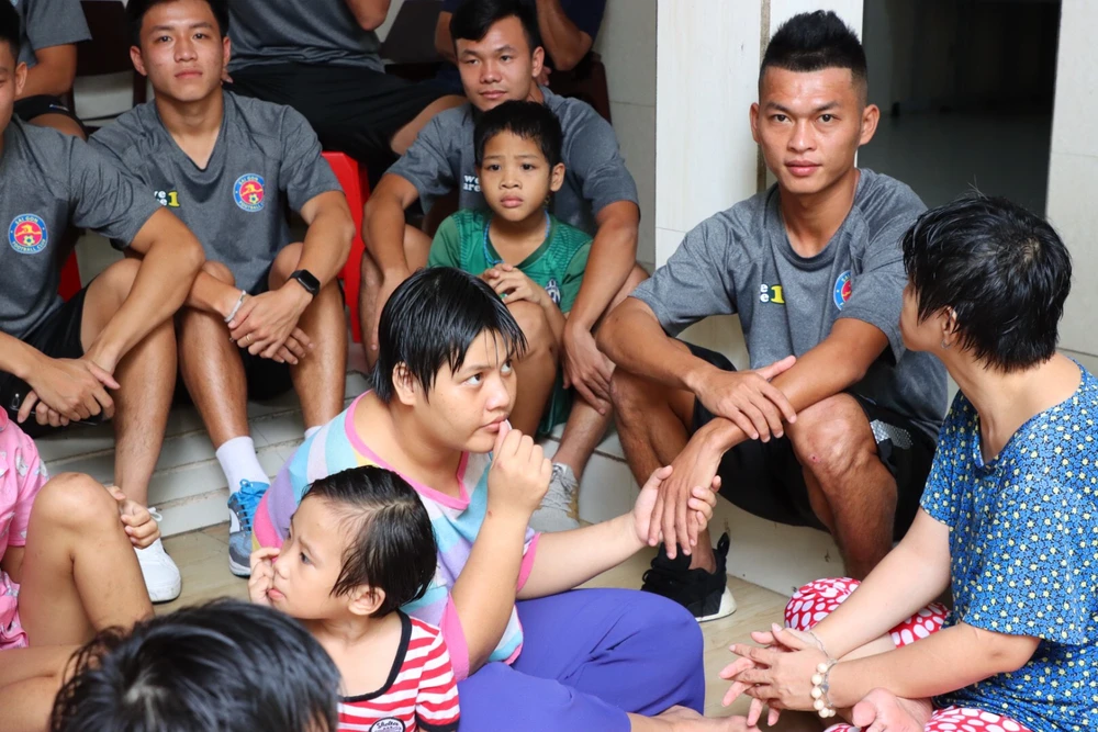 ... cùng các cầu thủ trẻ nâng niu những mảnh đời bất hạnh.