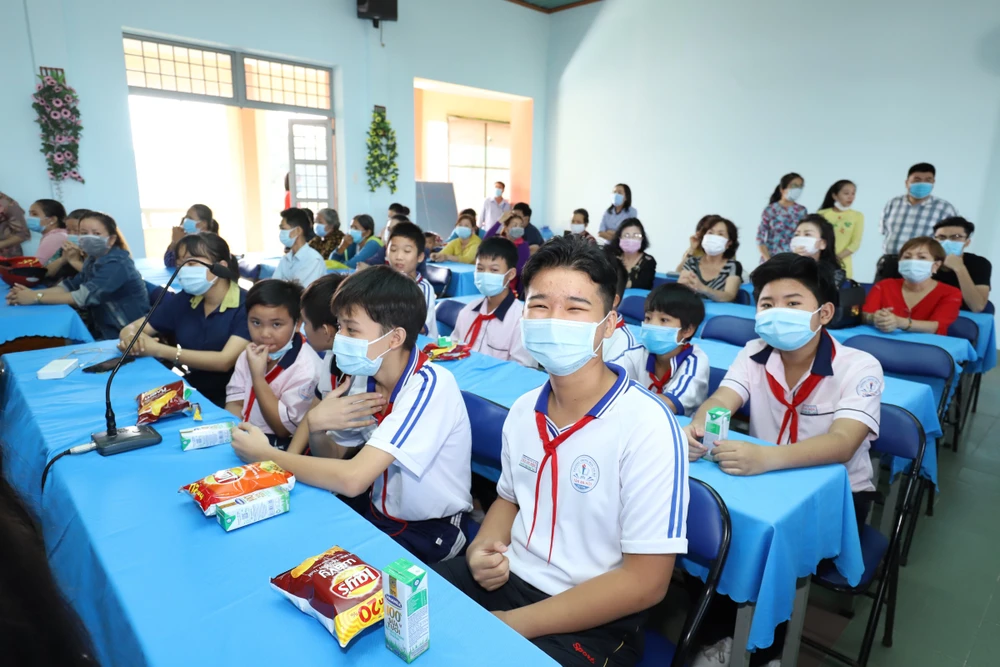 Buổi lễ trao học bổng cho các học sinh nhỏ tuổi diễn ra trong không khí thân mật và trìu mến...