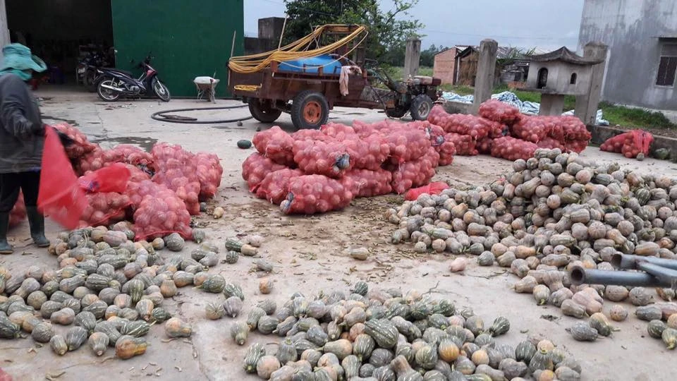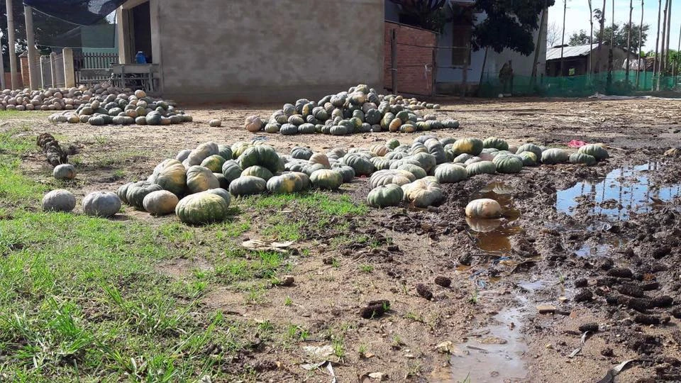 Thương lái không thu mua dẫn đến số bí thu hoạch được không có đầu ra để tiêu thụ...
