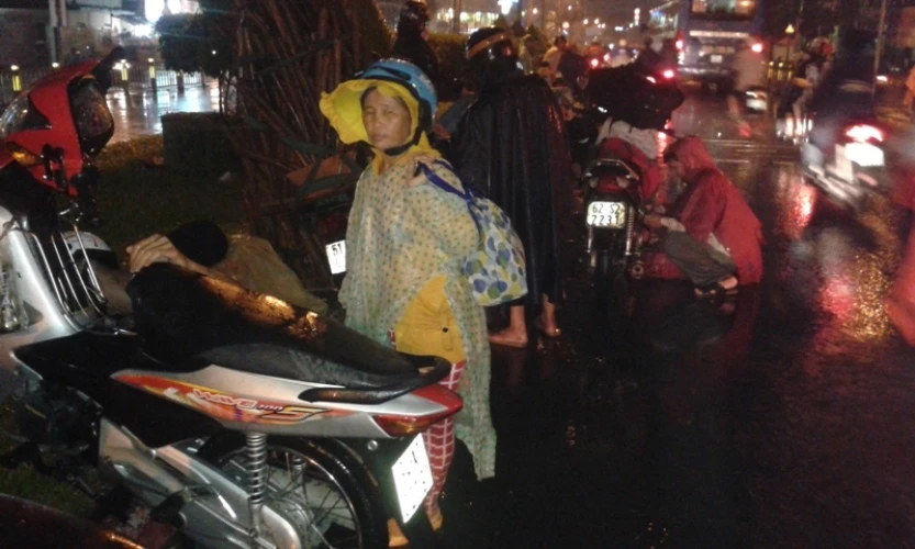Các cửa tiệm tạp hóa ven đường gần như đã đóng cửa nghỉ bán vì nước dâng quá cao. Xe cộ qua lại rất chậm, đã có hiện tượng ùn tắc cục bộ.