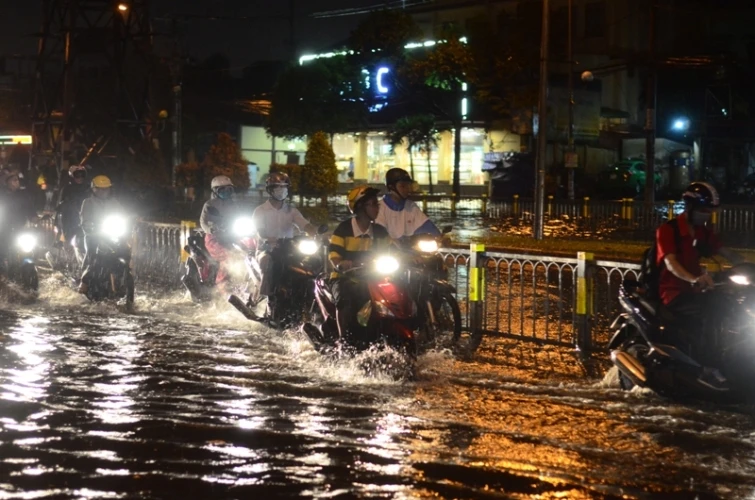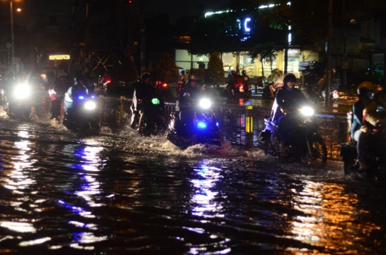 Xe máy lội bì bõm