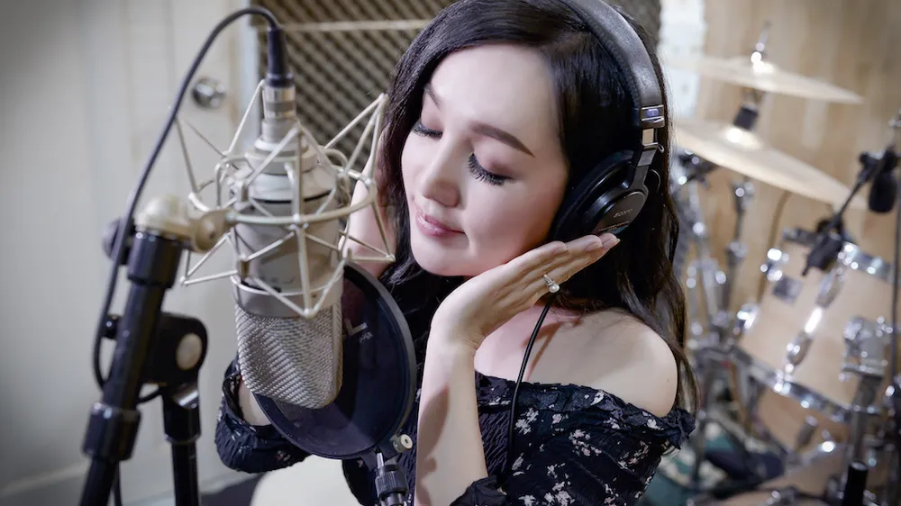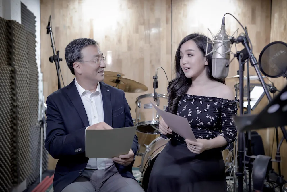 Hà Vân được người bạn Nhật Bản là người dạy về ngôn ngữ hướng dẫn phát âm tiếng Nhật tại phòng thu