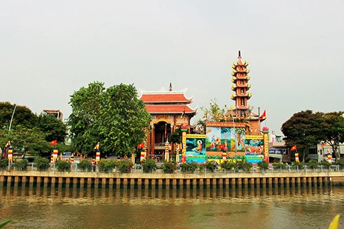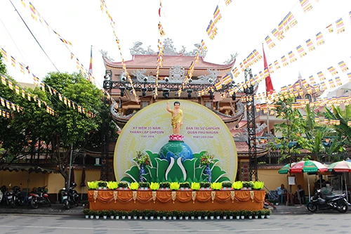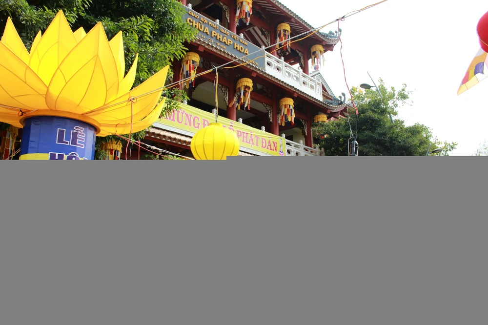 Khuôn viên chùa Pháp Hoa (quận 3, TP.HCM) cũng được trang trí lộng lẫy đón mừng đại lễ.
