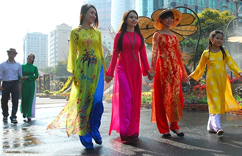 Trong những năm gần đây, áo dài luôn được giới nữ chọn mặc trong những ngày lễ tết. Ảnh: HTD