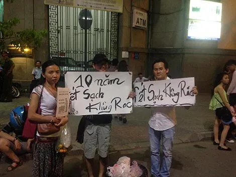 Bạn Toàn (giữa) cùng các bạn đã 10 năm trời, cứ đến ngày đón giao thừa lại ra khu vực đường hoa kêu gọi người dân bỏ rác vào thùng giấy mà các bạn đã chuẩn bị sẵn.
