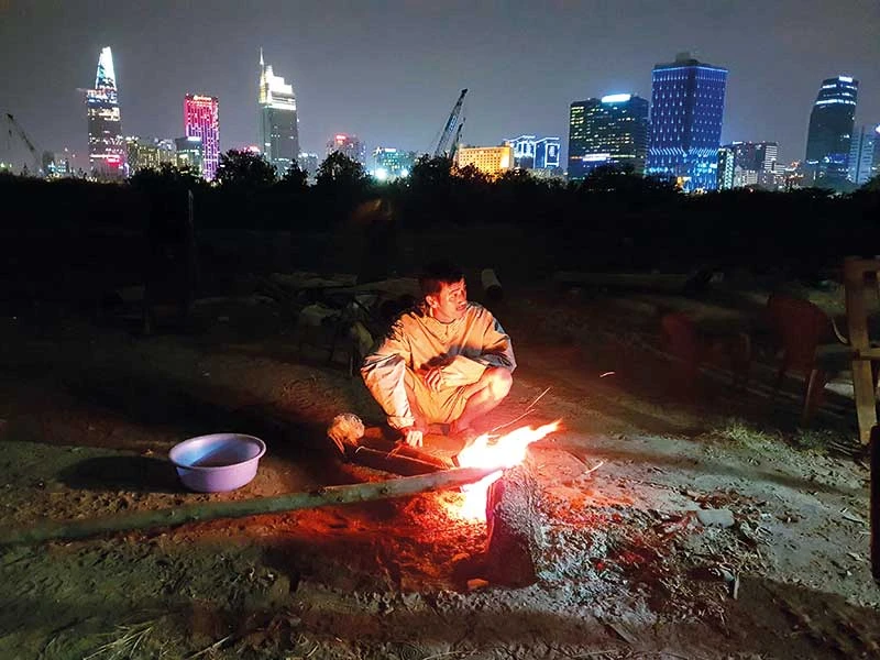 Từ nhỏ đến lớn tôi sống ở Đà Lạt, vì vậy chuyện người ta đốt lửa sưởi ấm ở trong nhà, ngoài lề đường, hay bất cứ đâu trong không gian ngoài trời, khi mùa đông giá lạnh tới không còn lạ lẫm với tôi. Thế nhưng ở Sài Gòn tôi chưa từng thấy cảnh cùng nhau đốt lửa để sưởi ấm như thế này. Một chú trong nhóm nói: “Có đống lửa cháy âm ỉ ban đêm, mấy anh em đồng nghiệp ngồi quây quần xung quanh trò chuyện, hát hò thấy vui và ấm áp. Chẳng vậy mà mấy đêm nay lạnh, hầu như đêm nào hội chúng tôi cũng nhóm lửa để sưởi”.