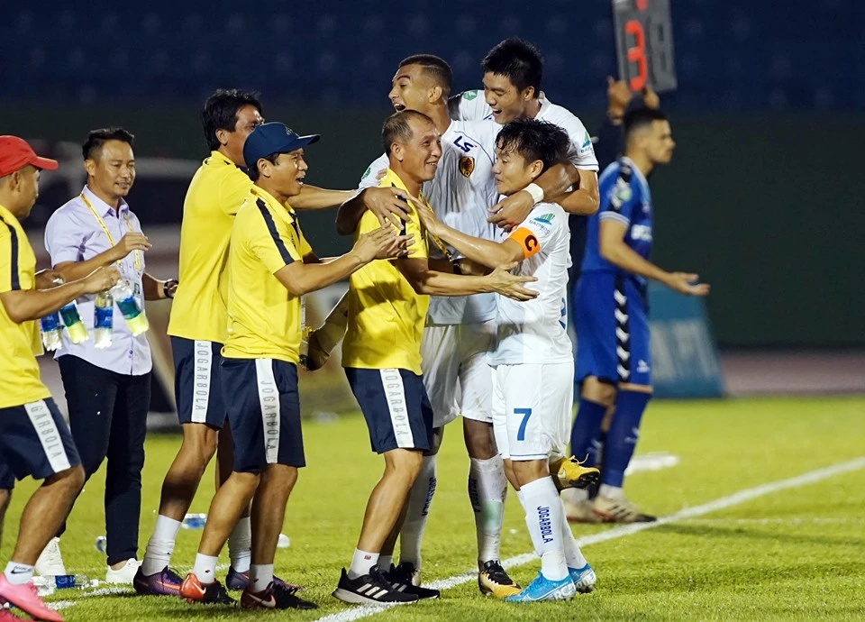 ... trong sự mừng rỡ nghẹn ngào của cầu thủ và ban huấn luyện Quảng Nam.