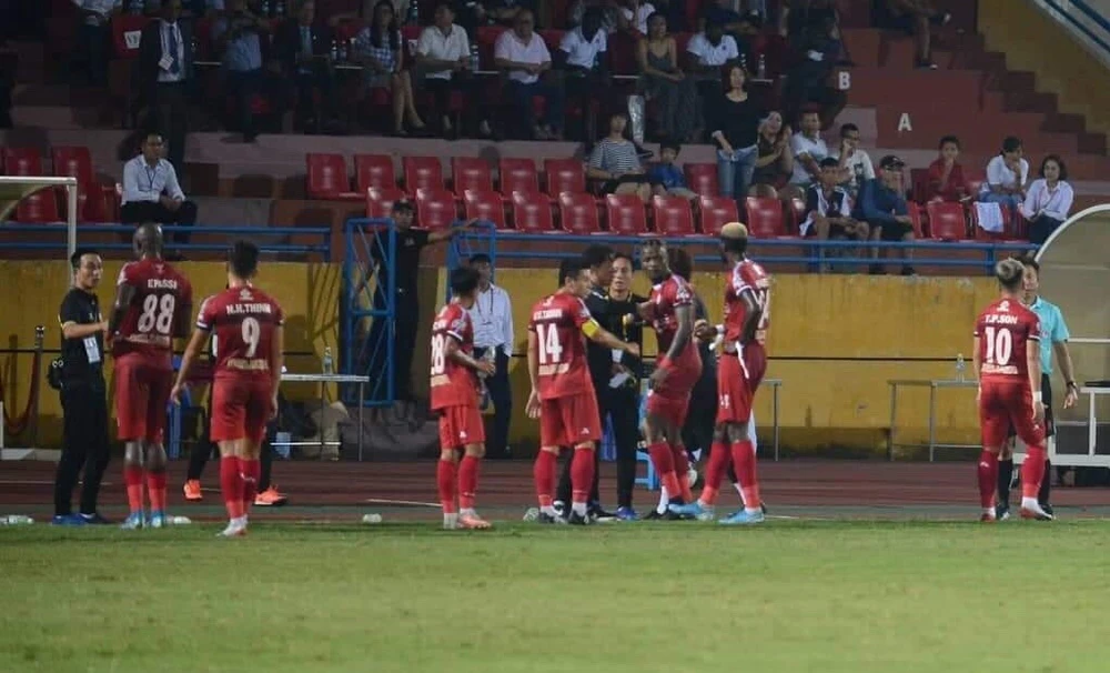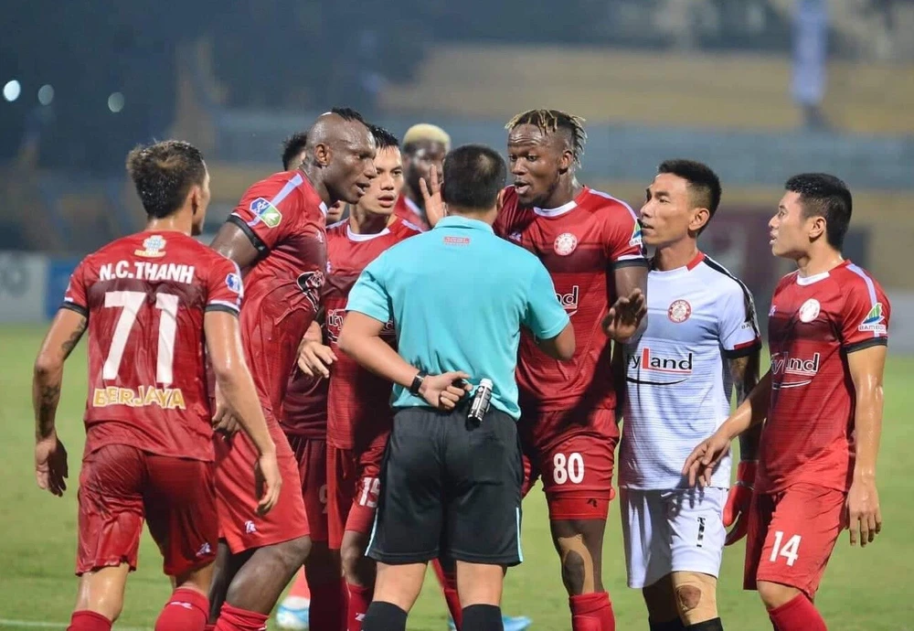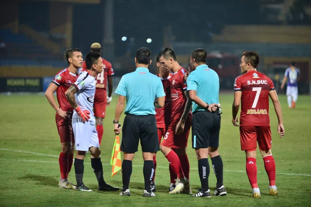Còn ở sân Hàng Đẫy, tranh cãi đã xảy ra sau một tình huống mà cầu thủ của Hà Nội hai lần phạm lỗi với thủ môn Thanh Thắng của đội khách TP.HCM.