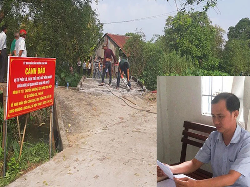 Cơ quan chức năng cưỡng chế phá dỡ công trình không phép ở quận Bình Thủy. Ảnh nhỏ: Bị can Lê Văn Trứ, phó giám đốc văn phòng đăng ký quyền sử dụng đất. Ảnh: HD