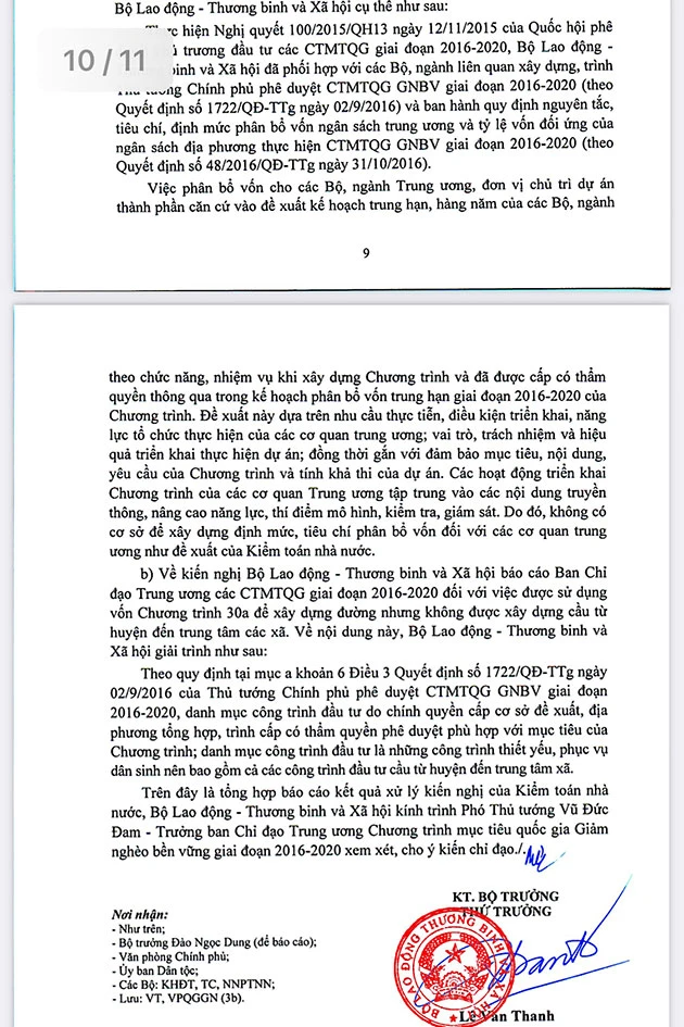 Tuy nhiên, sau khi xem xét và xin ý kiến của Bộ Tài chính, Bộ KH&ĐT, Bộ LĐ-TB&XH đề nghị Phó Thủ tướng chỉ đạo các tỉnh trên thực hiện nghiêm kiến nghị của Kiểm toán Nhà nước (KTNN). Cụ thể là bổ trí ngân sách địa phương để hoàn trả ngân sách trung ương đối với số vốn đầu tư sai đối tượng theo đúng quy định của Luật Ngân sách nhà nước và các văn bản hướng dẫn trong năm 2021.