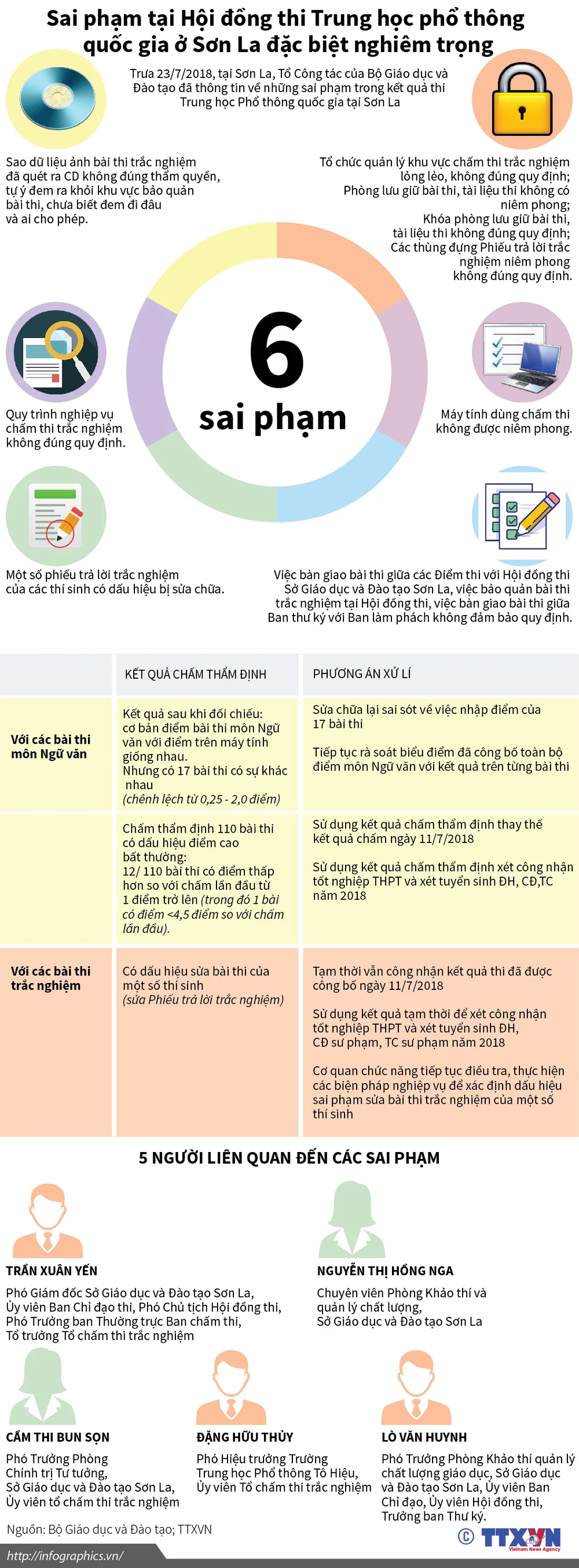 Trưa 23-7-2018, tại Sơn La, Tổ công tác của Bộ GD&ĐT đã thông tin về những sai phạm trong kết quả thi THPT quốc gia tại Sơn La. Theo Tổ công tác của Bộ GD&ĐT, sai phạm trong quá trình chấm thi, bàn giao bài thi THPT quốc gia tại Hội đồng thi Sơn La là đặc biệt nghiêm trọng.