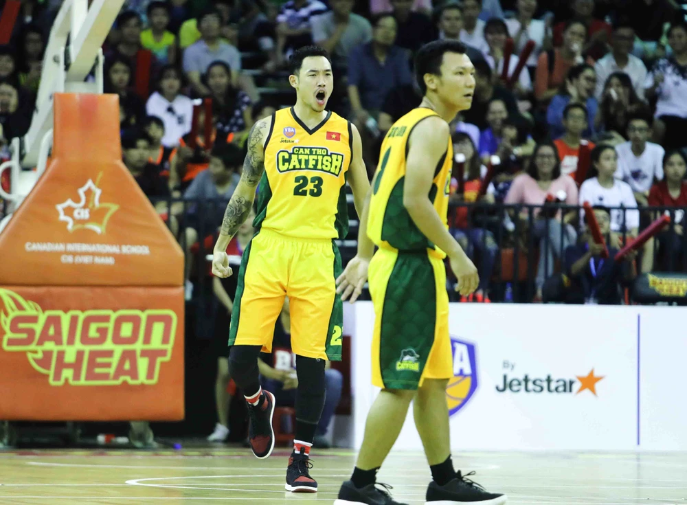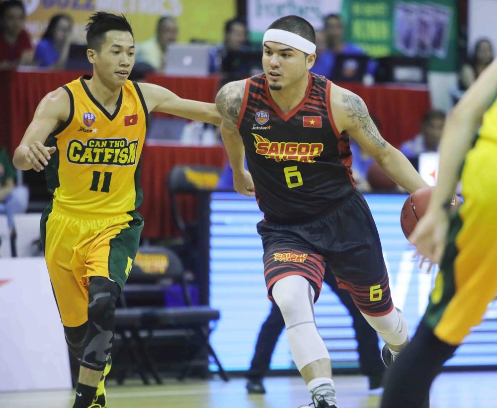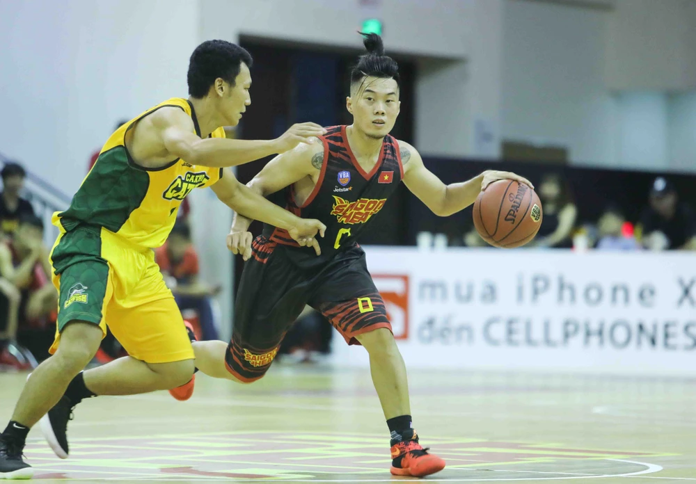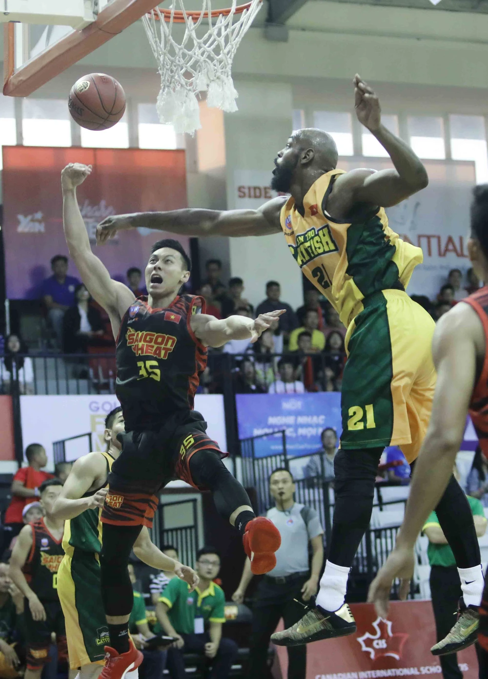Trung phong Saigon Heat đối mặt với nhiều truy cản của Sang Đinh (11), tay ném Cantho Catfish đạt phong độ ổn định nhất trận đấu. Anh ghi tổng cộng 25 điểm cho Cantho Catfish và nhận danh hiệu Cầu thủ xuất sắc nhất trận.