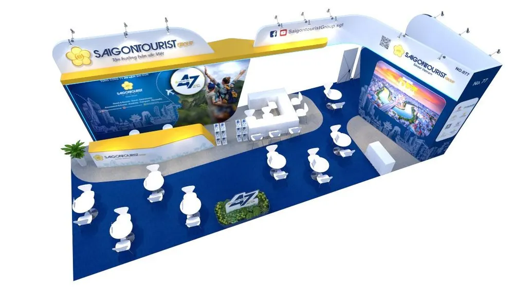 Được thiết kế hiện đại, chuyên nghiệp với chủ đề “Tận hưởng Bản sắc Việt 2022 cùng Saigontourist Group”, gian hàng Saigontourist Group đặt tại vị trí số 77, quy tụ sự tham gia của 8 đơn vị thành viên là những đại diện hàng đầu trong các lĩnh vực dịch vụ lữ hành, khách sạn, nghỉ dưỡng và đào tạo nguồn nhân lực du lịch.
