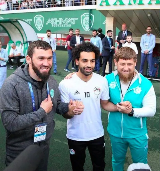 Salah chụp ảnh cùng thủ lĩnh Kadyrov và bị ném đá
