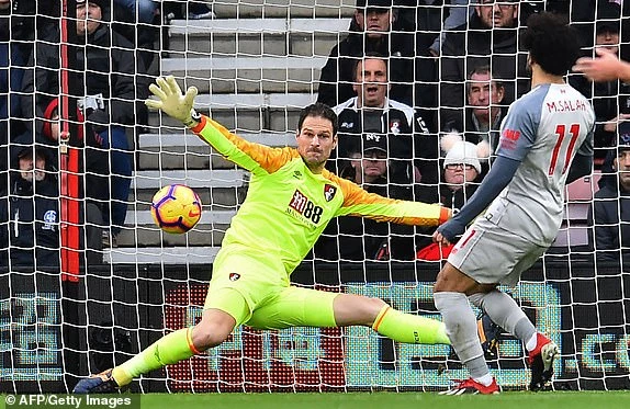 Bị đội khách Liverpool dồn ép liên tục, mành lưới của đội chủ nhà Bournemouth cũng phải rung lên ở phút 25. Xuất phát từ pha phối hợp giữa hai chủ công của Liverpool là Salah và Firmino, tiền đạo người Brazil, Firmino tung cú sút xa ngoài vòng cấm thủ môn Begovic đổ người bắt bóng nhưng không làm chủ được tình hình.