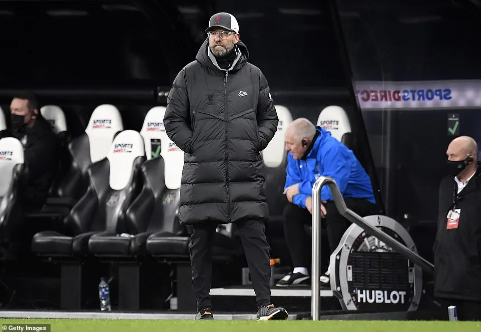 HLV Jurgen Klopp sốt ruột bên ngoài sân. ẢNH: AP