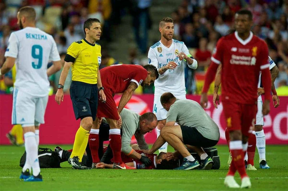 Như một con mồi đang được săn lùng hàng đầu trên sân, Salah bổng dưng tự “đưa đầu vào thòng lọng”. Chỉ chờ có thế, Ramos rất cao, to và cực khỏe siết tay và nách lại. Cánh tay của Salah như nằm trong cái bẫy không thể vùng được. Sẵn lợi thế chiều cao, cân nặng, cơ bắp cực khỏe, Ramos... giật một phát, Salah té ngã cực nặng và rạn xương tay, chấn thương nặng vùng bả vai... ra nghỉ. Sau đó là đến World Cup 2018 tại Nga, Salah chấn thương nặng phải dưỡng thương, chỉ ra sân trận cuối vòng bảng tại Nga, tuyển Ai Cập thì bị loại ngay sau vòng bảng với ba trận toàn thua.