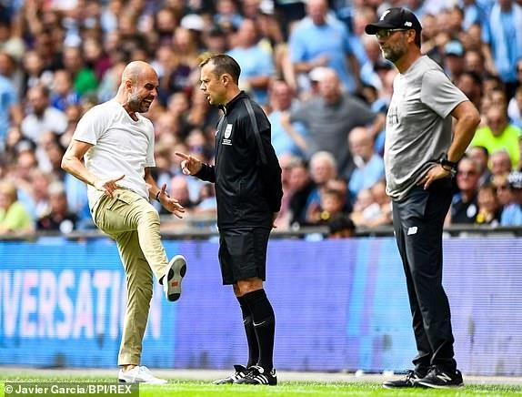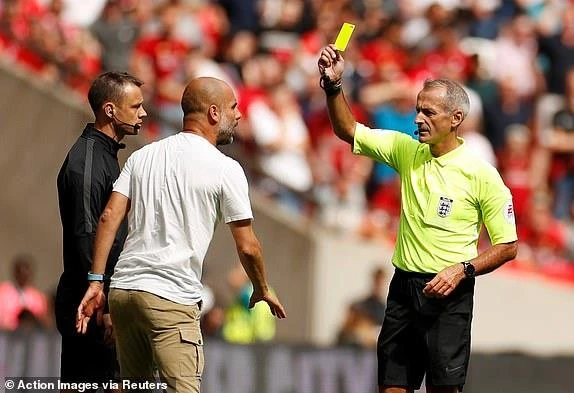 HLV Pep Guardiola nhận thẻ vàng sau tình huống thiếu kiềm chế.