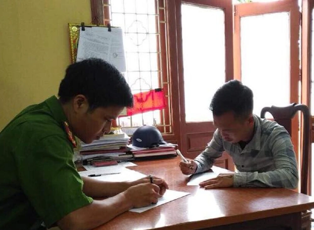 Nghi phạm Vũ Tuấn Anh tại cơ quan công an