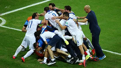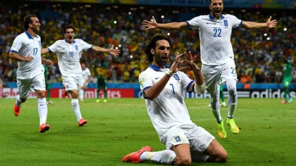 Samaras và các cầu thủ Hi Lạp ăn mừng bàn thắng quyết định. Ảnh: FIFA.com