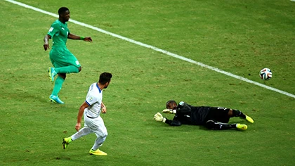 Sau nhiều lần uy hiếp khung thành thủ môn Barry, Hi Lạp cuối cùng cũng có bàn thắng khai thông thế bế tắc. Phút 42, xuất phát từ tình huống chuyền về quá nhẹ của Tiote, Andreas Samaris rất nhanh băng lên cướp được bóng rồi phối hợp bật tường một chạm với đồng đội trước khi chính anh có cú kết thúc trong vòng cấm gọn gẽ qua tay thủ thành Barry mở tỉ số trận đấu.