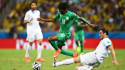 Không thể kết liễu đối thủ, các cầu thủ Hi Lạp trả giá đắt khi chỉ một thoáng sơ hở của hàng thủ, Gervinho đã có bóng trong vòng cấm trước khi căng ngang cho Bony đặt lòng một chạm vào góc gần tung lưới thủ thành Glykos đưa trận đấu về vạch xuất phát.