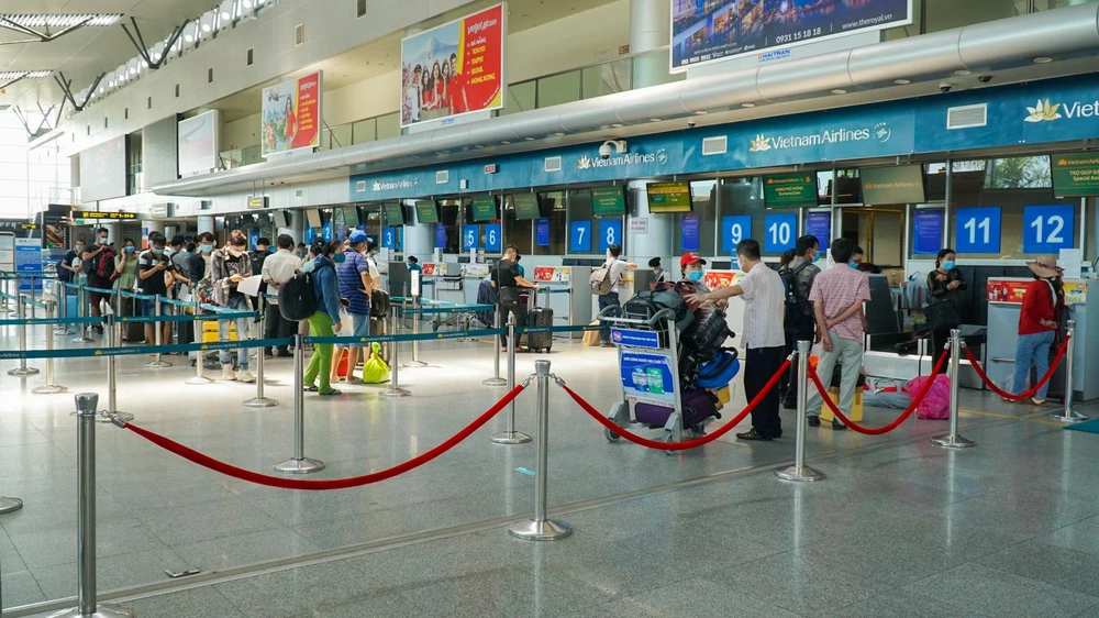 Đa phần khách có mặt tại sân bay làm thủ tục đi Hà Nội và TP HCM. Tất cả hành khách đều phải thực hiện khai báo y tế, đo thân nhiệt trước khi lên máy bay.