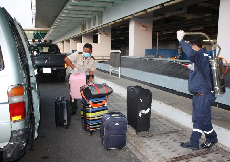 Công tác phun khử trùng hành lý tại Cảng HKQT Cần Thơ. Ảnh: ACV