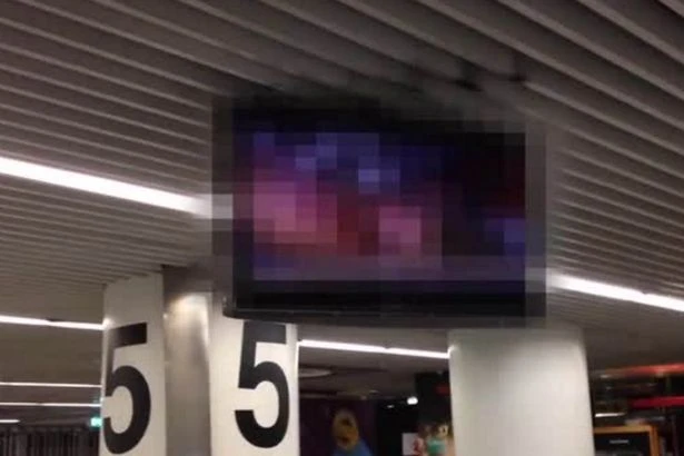 Hành khách đã bị sốc khi thấy màn hình tivi sân bay chiếu cảnh phim khiêu dâm. (ảnh: Mirror)