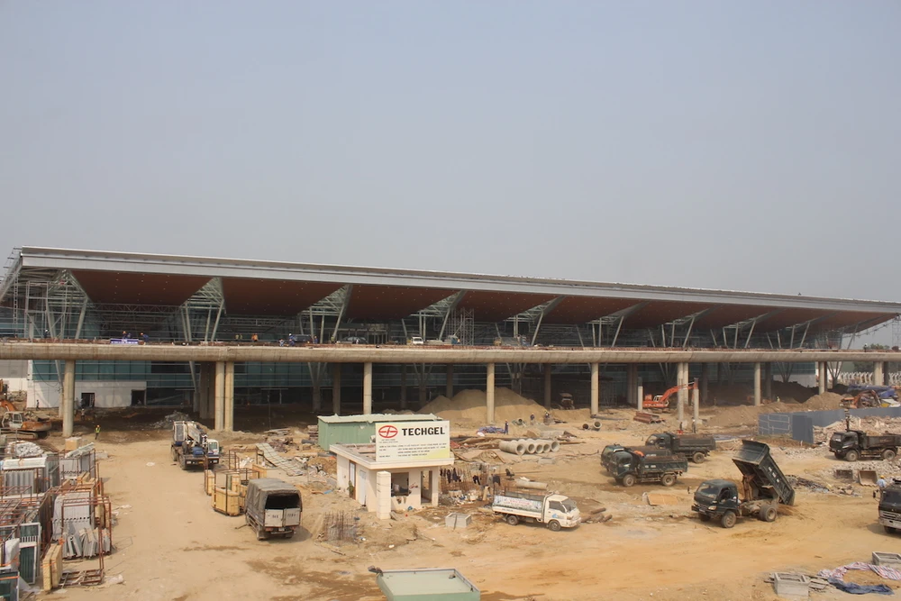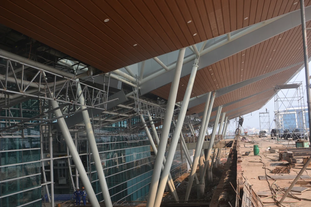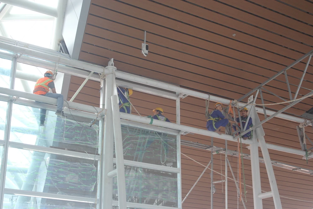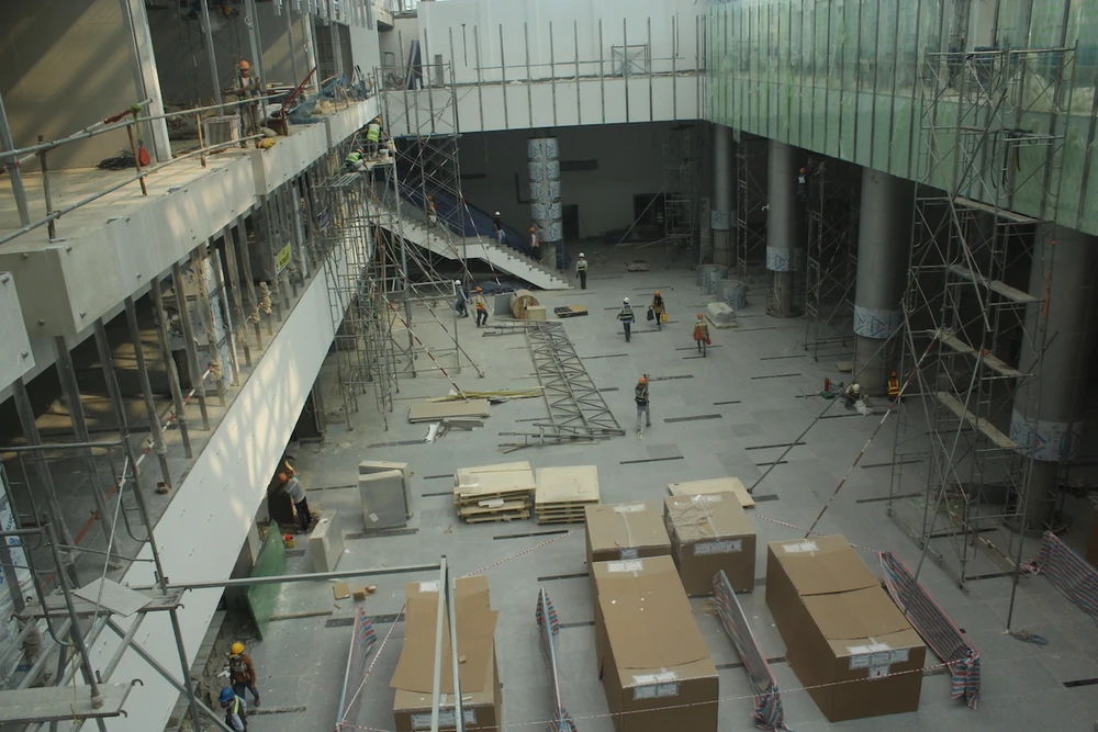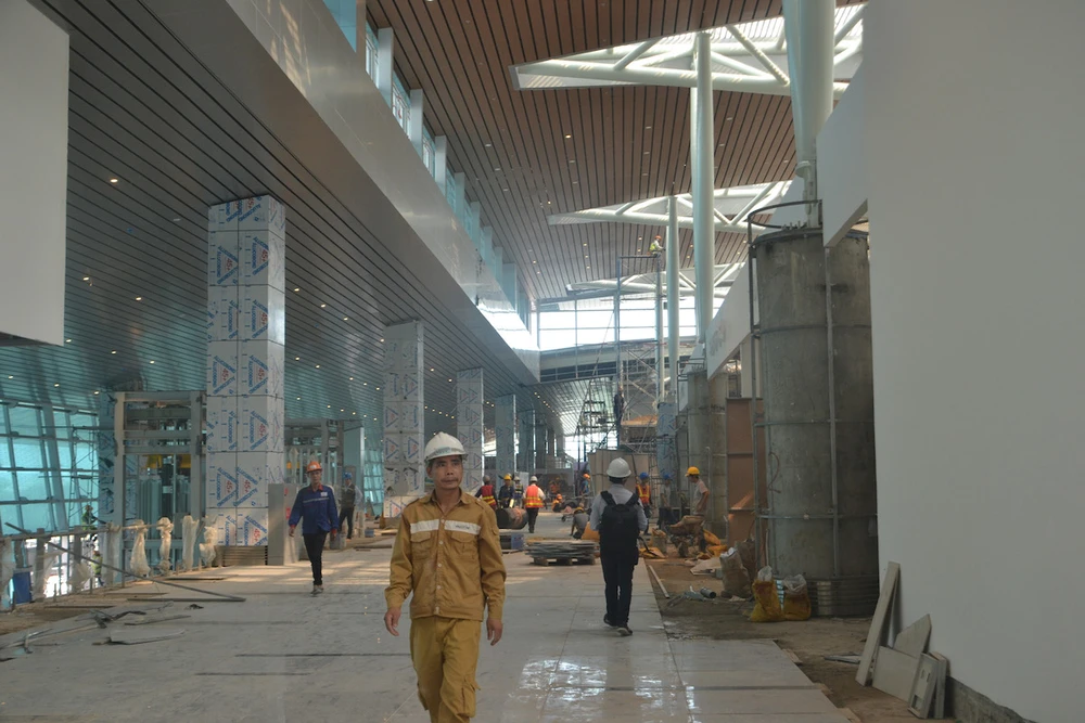 Các hạng mục của nhà ga mới cơ bản đã hoàn thành, hiện công trình mới đang trong quá trình hoàn thiện với sự quyết tâm của các đơn vị thi công, công nhân trên công trình. Ảnh: NGUYỄN TRI