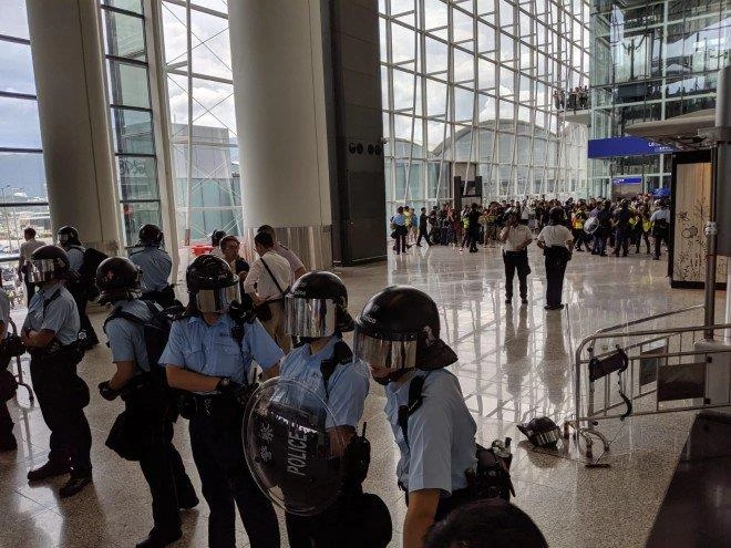 Chiều nay 1-9, người biểu tình và cả cảnh sát cùng kéo về sân bay quốc tế Hong Kong. Theo báoSCMP, người biểu tình hy vọng sẽ lặp lại tình huống đã diễn ra hai tuần trước, khi cuộc biểu tình của họ khiến sân bay bị tê liệt, gần cả ngàn chuyến bay bị hủy.