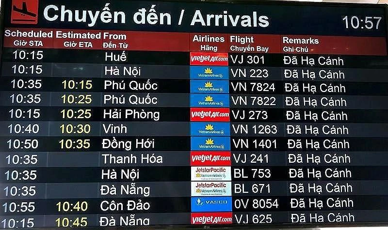 Hành trình các chuyến bay được cập nhật trên màn hình FIDS. Ảnh: P.ĐIỀN