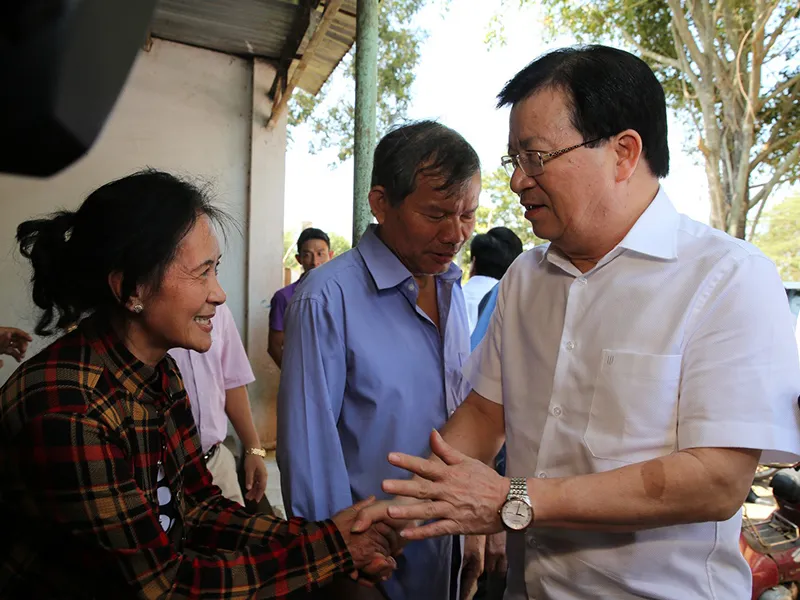 Phó Thủ tướng Trịnh Đình Dũng trong một lần đến thăm người dân khu vực giải phóng mặt bằng của dự án. Ảnh: V.LONG