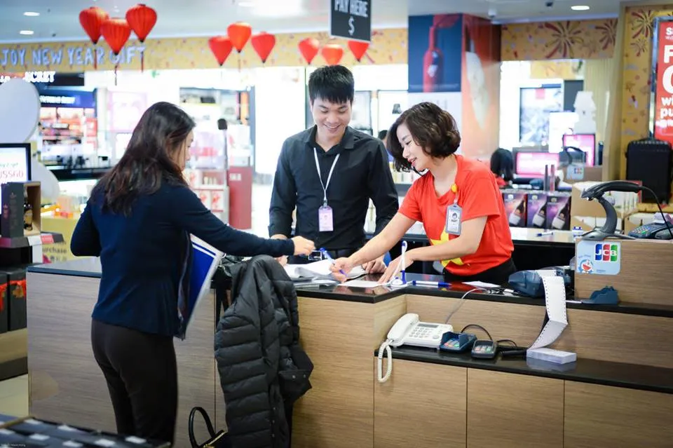 Nhân viên tại sân bay khoác lên mình áo cờ đỏ sao vàng. Ảnh: Noibai International Airport .