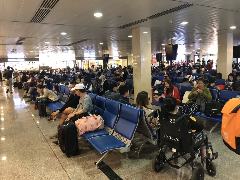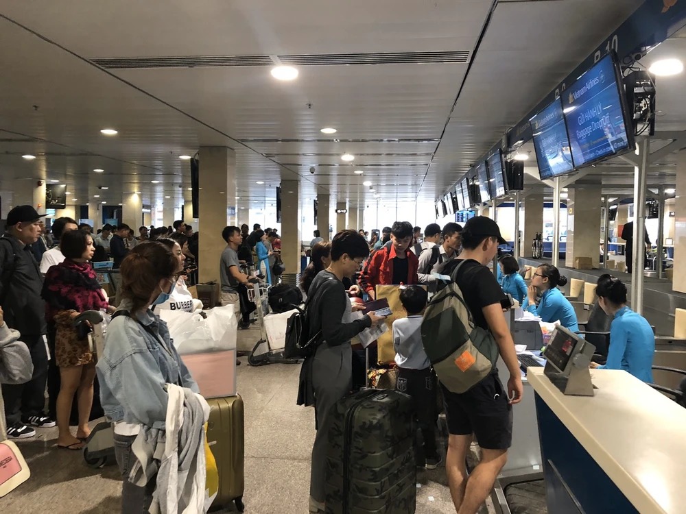 Mặc dù chưa phải là ngày cao điểm của sân bay Tân Sơn Nhất, song lượng khách đổ về sân bay đã đông hơn thường ngày.