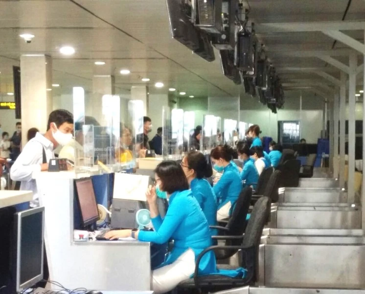 Cảng HKQT Tân Sơn Nhất đã lắp đặt các vạch giãn cách trong khu vực nhà ga, khu vực kiểm tra an ninh và lắp đặt tấm kính chống giọt văng bắn tại hệ thống các quầy thủ tục tại nhà ga quốc nội và 30 quầy thủ tục tại các đảo J, K và L nhà ga quốc tế.