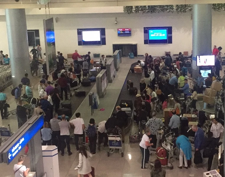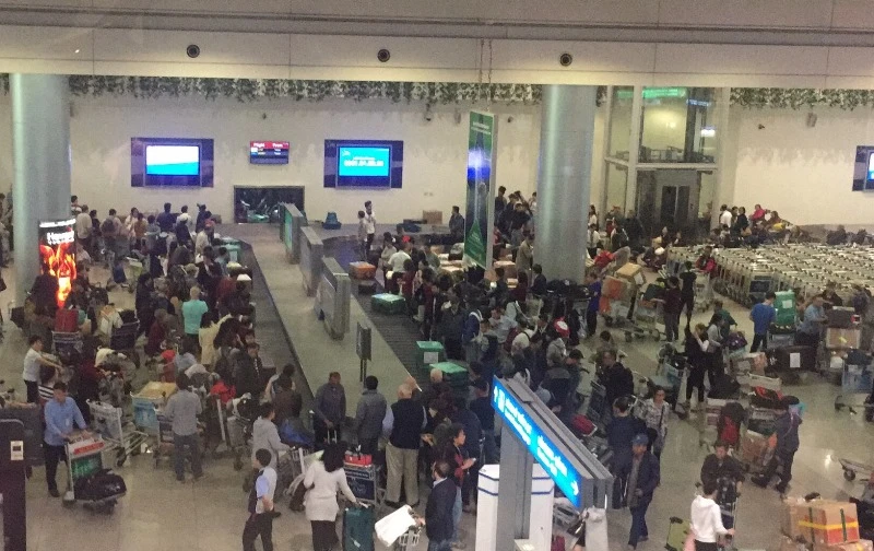 Trong khi đó, khu vực băng chuyền nhận hành lý quốc tế cũng có rất nhiều người đứng chờ nhận hành lý nên thời gian di chuyển ra bên ngoài kéo dài hơn thường lệ.