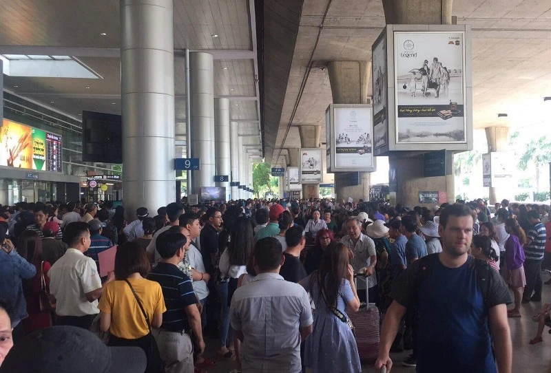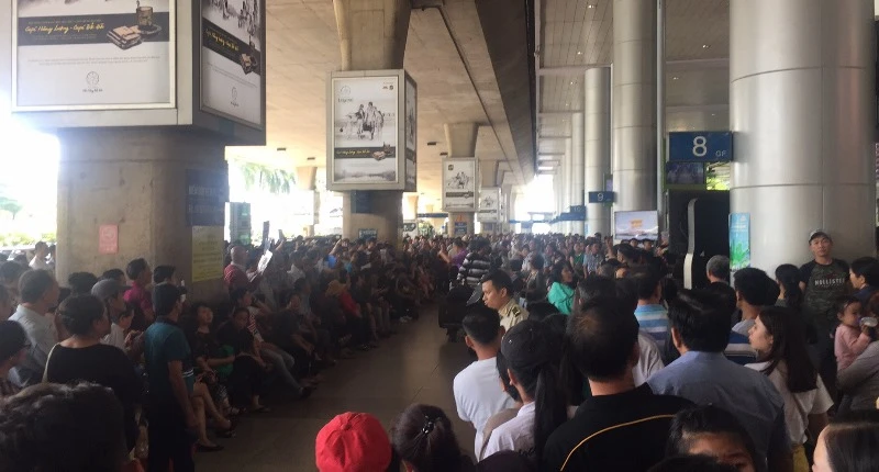 Do lượng người đến đón quá đông nên sảnh ga quốc tế gần như không còn chỗ trống, nhất là khu vực cửa đi ra. Nhân viên an ninh hàng không phải thay nhau đứng ra nhắc nhở người đến đón không chen lấn, dành lối cho khách thoát ra bên ngoài.