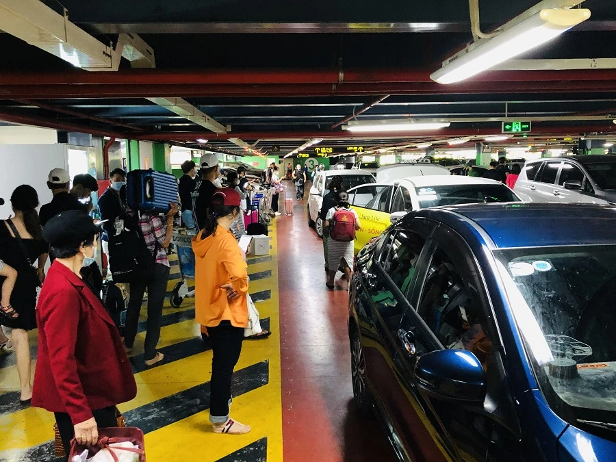 Còn khu vực nhà giữ xe TCP khá bận rộn do lượng khách dồn về đây bắt xe để rời sân bay. Dù ứng dụng BeCar đã có điểm đón khách ở làn B nhà ga quốc tế để chia lửa với nhà giữ xe TCP nhưng lượng khách đổ về làn D để bắt xe taxi truyền thống và leo tầng 3-5 để bắt xe công nghệ khá đông đúc.