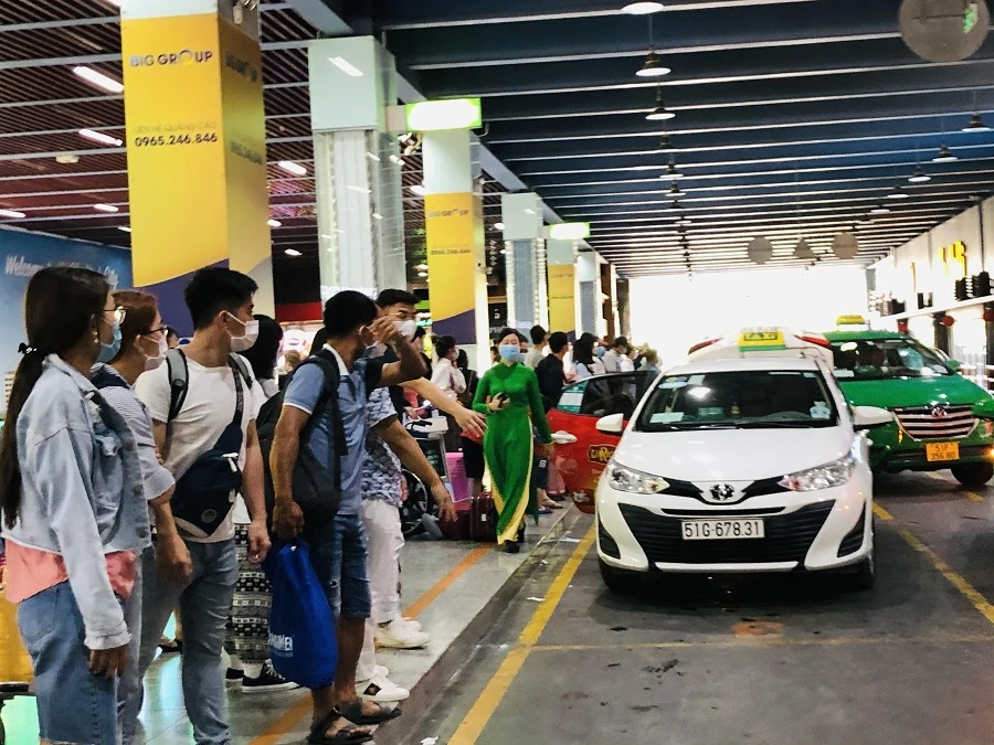 Lượng khách rời sân bay Tân Sơn Nhất khá đông sau thời gian nghỉ lễ. Ảnh: PHONG ĐIỀN
