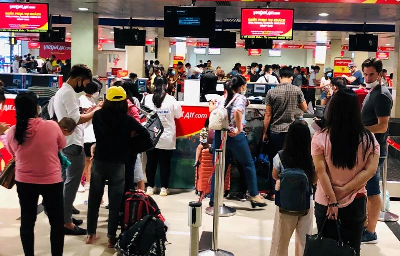 Các chuyến bay xuất phát từ Cảng hàng không quốc tế Tân Sơn Nhất đã tấp nập khách. Ảnh: P.ĐIỀN