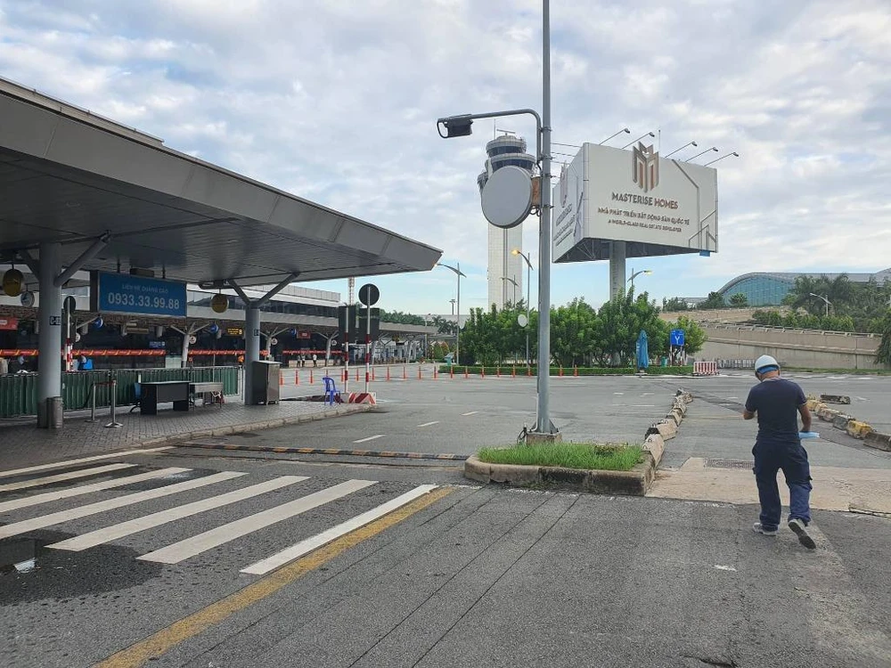 Khu vực đón taxi không một bóng người hay chiếc xe nào.