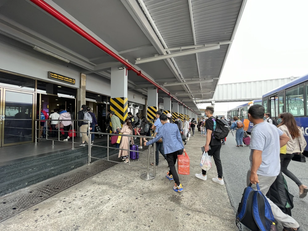 Về phía sân bay Tân Sơn Nhất, cả chiều đến và chiều đi sân bay cũng vắng khách. Một ngày sẽ có khoảng 200 hành khách từ các tỉnh phía Bắc về được xét nghiệm ngẫu nhiên COVID-19.