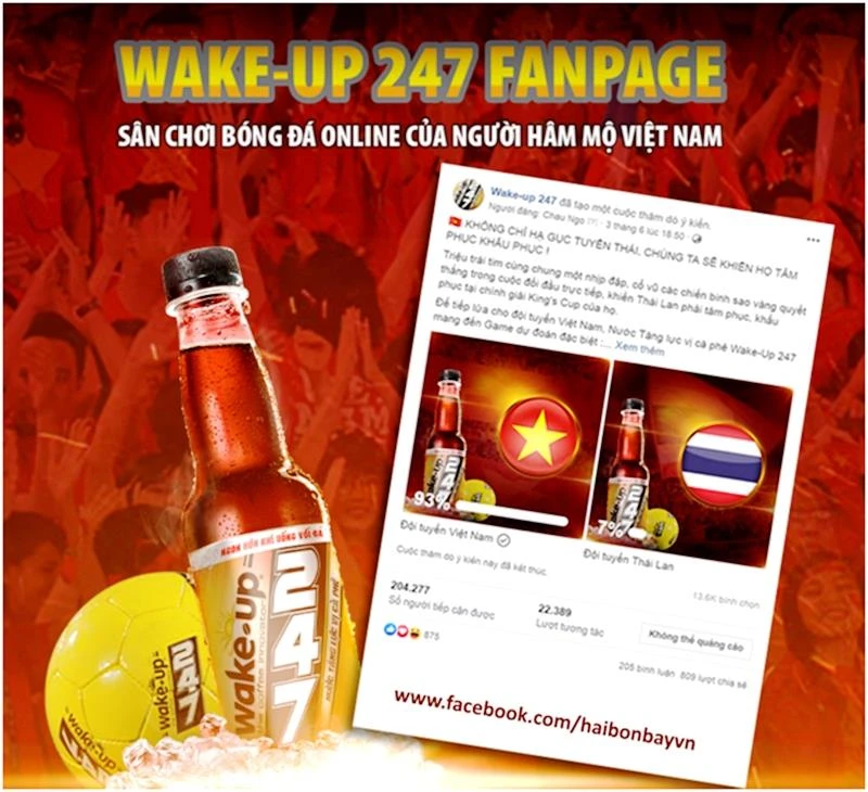 Khởi đầu năm 2019 với 2 chuyến bay đưa cổ động viên nước nhà sang UAE tiếp lửa đội tuyển Việt Nam thi đấu AFF Cup; đến tháng trung tuần tháng 2 công bố danh hiệu Nhà tài trợ chính của Giải Bóng đá Vô địch quốc gia (V.League) Wake-up 247; và bây giờ, trở thành sân chơi đầy bất ngờ và hào hứng của người yêu bóng đá trên không gian mạng - Fanpage Wake-up 247 ngày càng chứng tỏ sức sáng tạo và tiềm năng to lớn của nhãn hiệu Nước tăng lực vị cà phê Wake-up 247.
