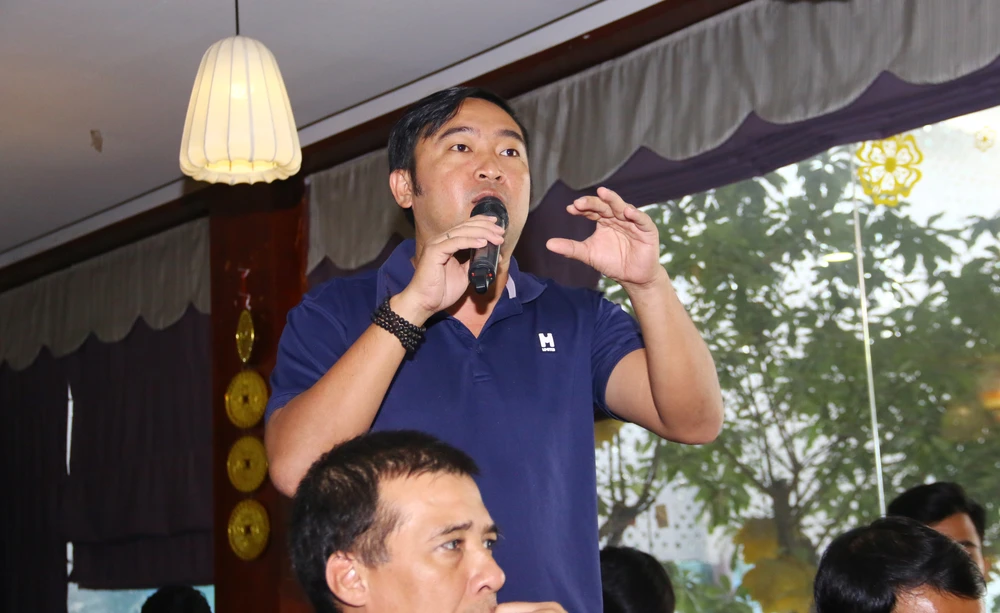 Phó Tổng giám đốc Tập đoàn truyền thông thể thao Thiên Long, kiêm Phó BTC giải Trần Hải trả lời báo chí.